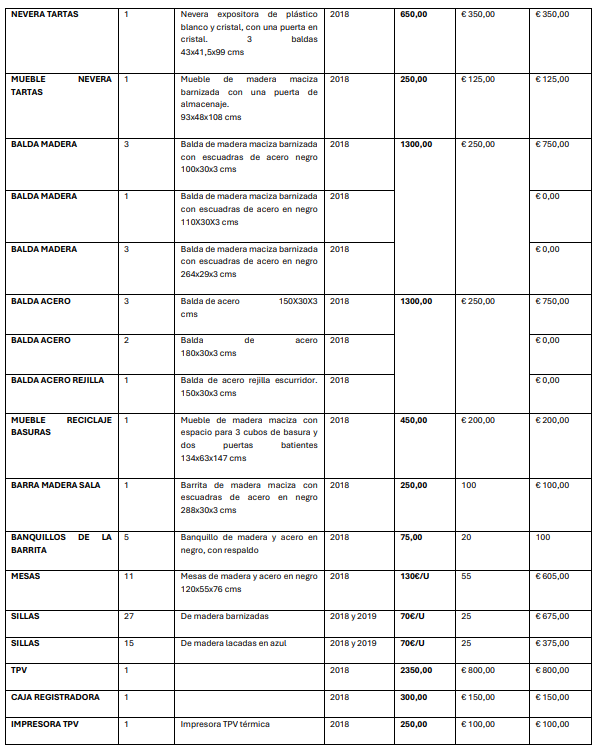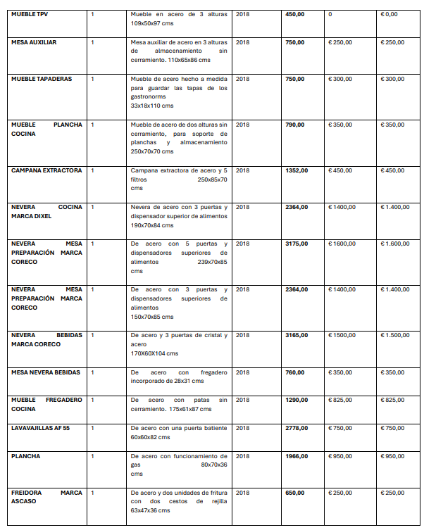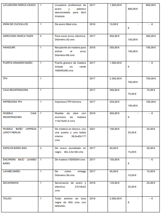 - Lote 2, compuesto por los bienes del Local de OHANA PALO